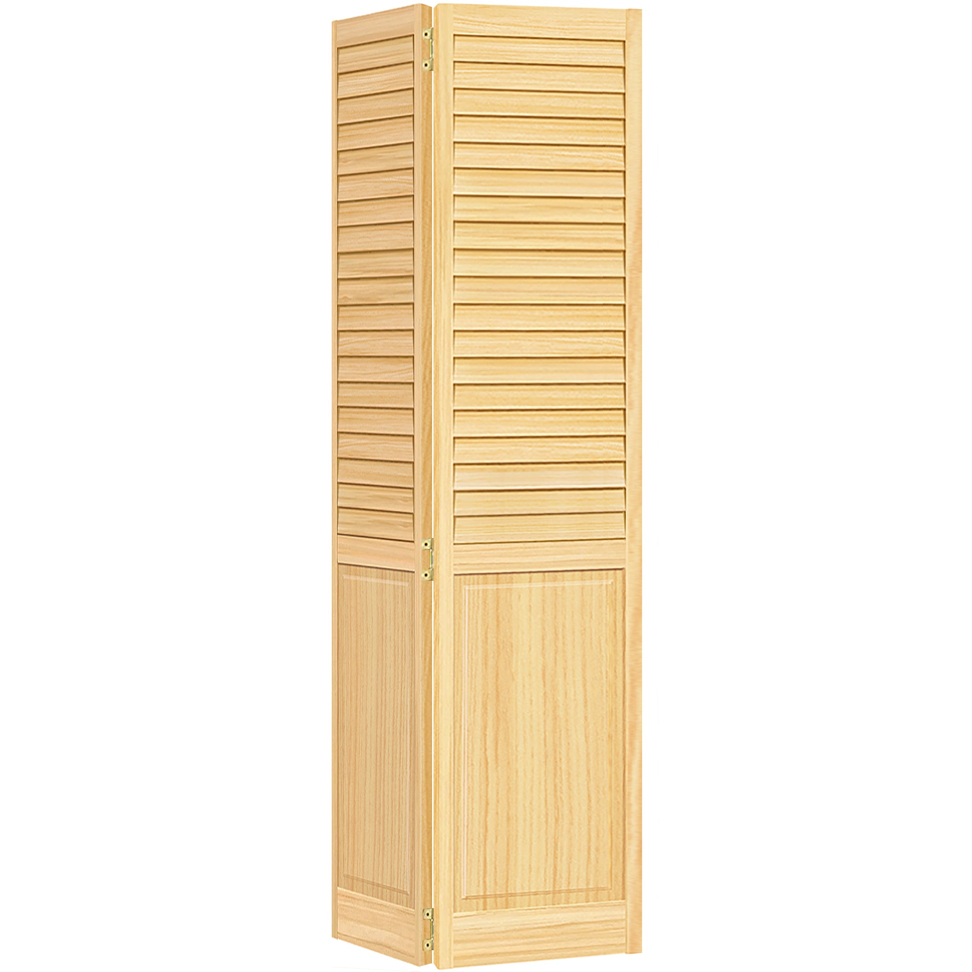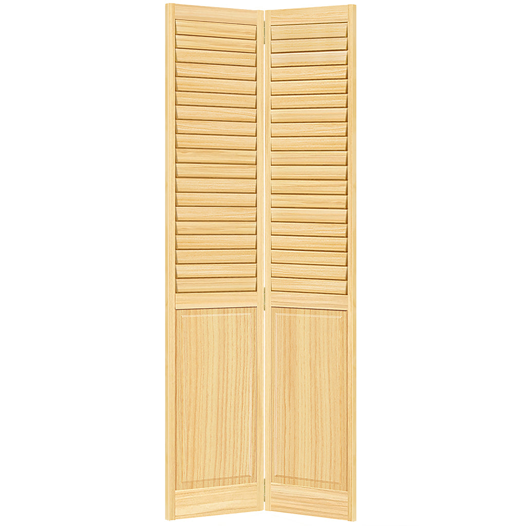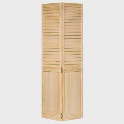 Featuring plantation wide louvers and a double hip panel, these solid Pine Bi-fold doors have a modern clean style. The extra wide louvers offer maximum breathability. The high-quality vertical grain delivers the best appearance and performance. They are durable and are easy to install (hardware is included). They are unfinished and can be painted or stained to match your decor. These doors are 1" thick.
