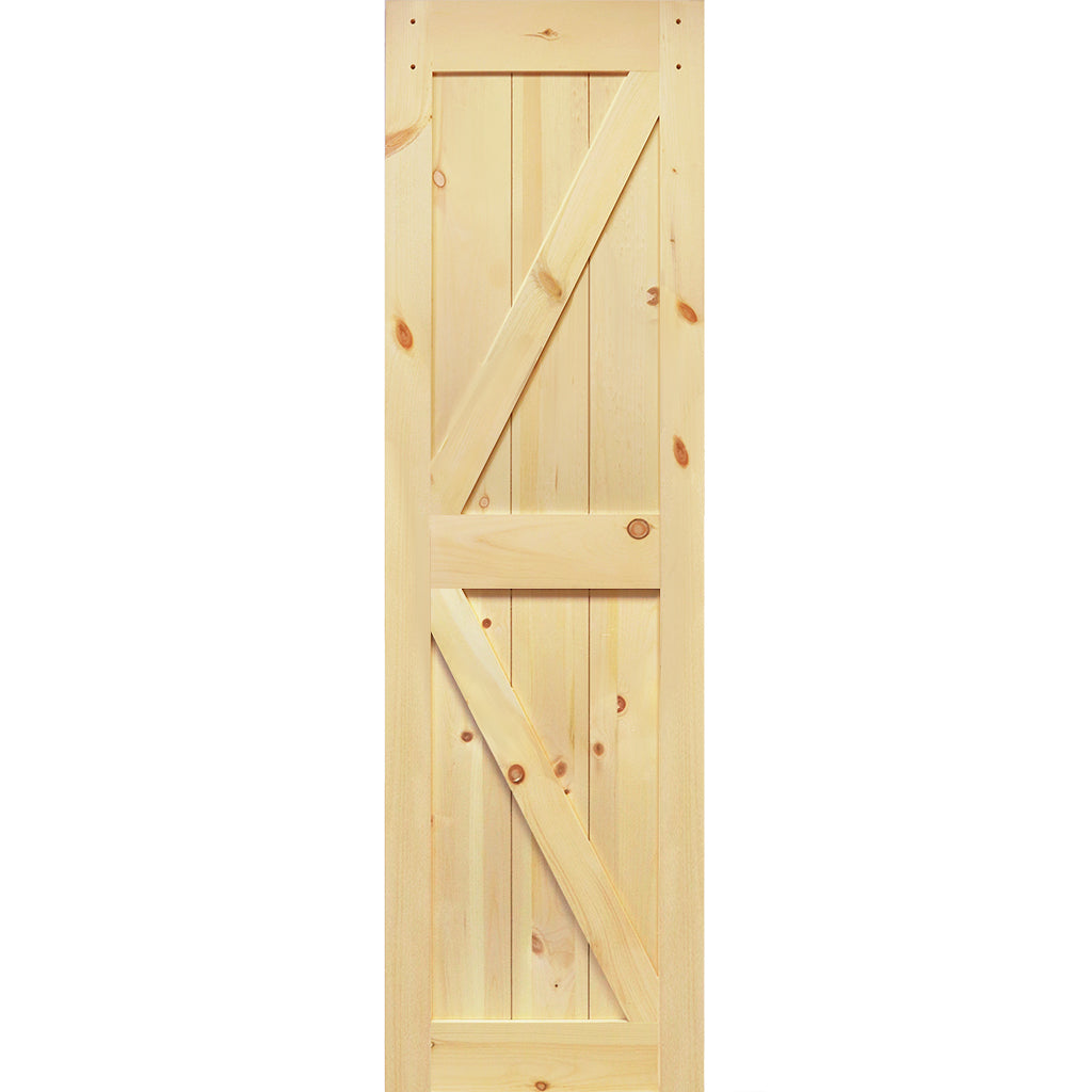 K-Rail Solid Knotty Pine Unfinished Barn Door Assembled Slab