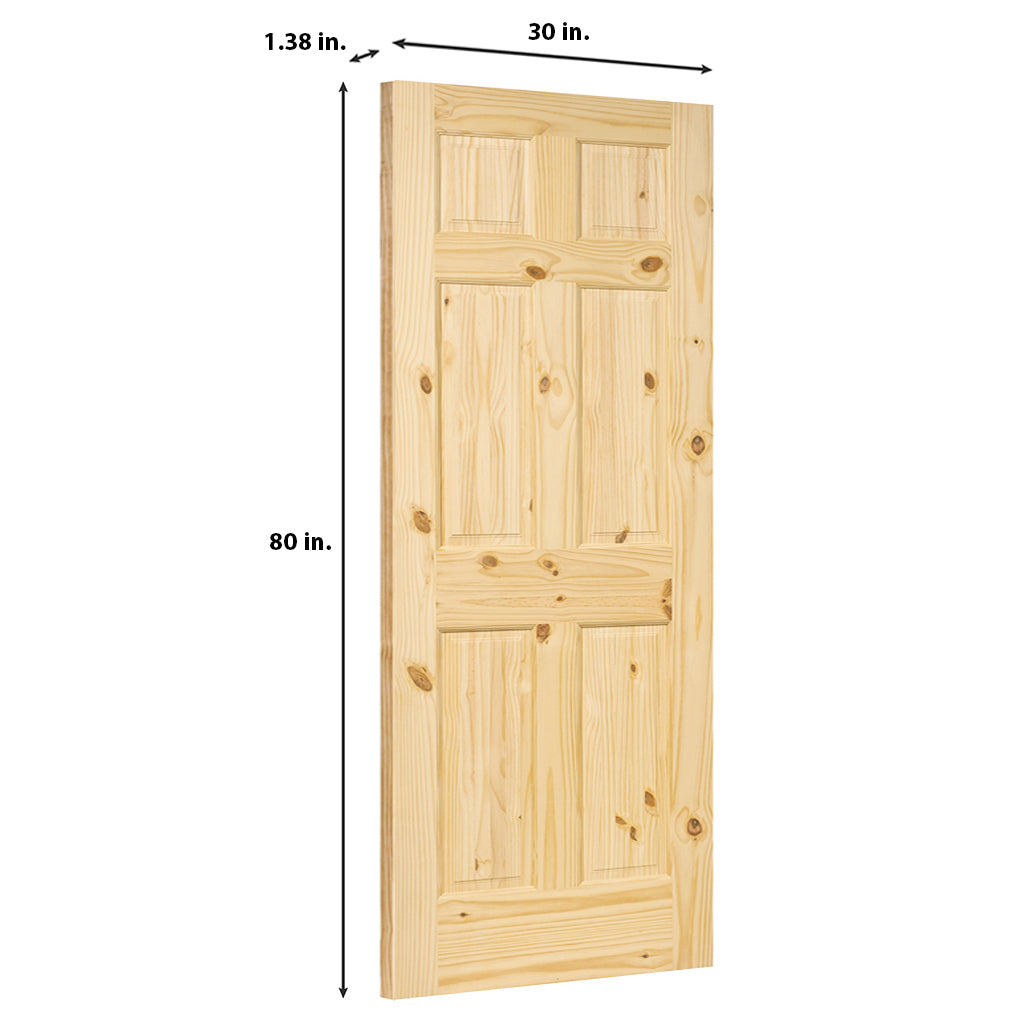 Add the natural beauty and warmth of wood to your home with our solid Knotty Pine Colonial style interior doors. The 6 Panel design gives the doors a clean, traditional style that will complement any decor. The doors are durable, made of solid pine and are easy to install. Our Colonial doors are unfinished and can be painted to match your decor. The doors are constructed from solid pine from environmentally-friendly, sustainable yield forests. The high-quality vertical grain delivers the best appearance and performance. These doors are 1.375" thick.Β