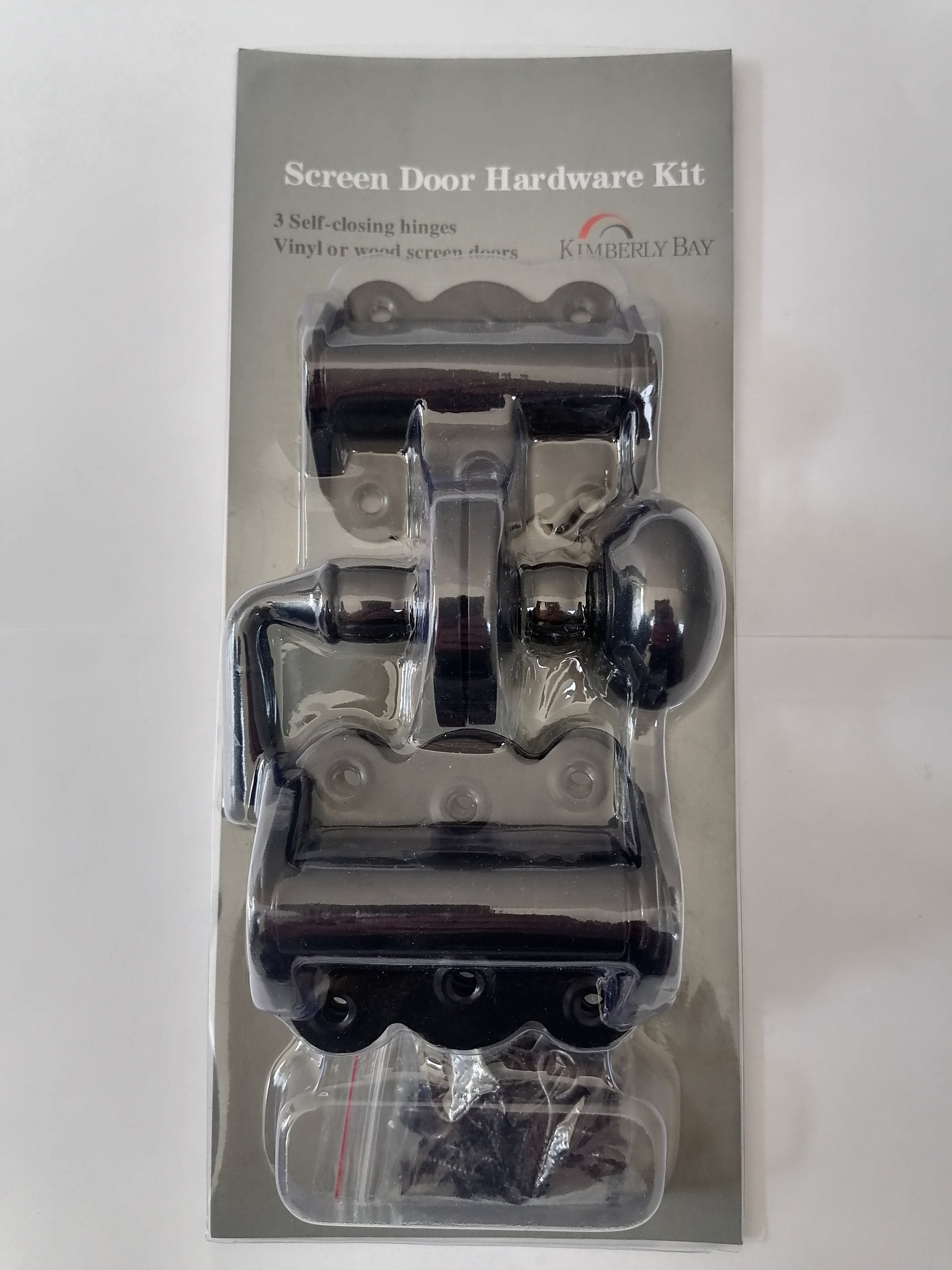 Easy three-hinge hardware makes installing screen doors easy. No spring assembly required. Hardware is metal k powder coated finished.