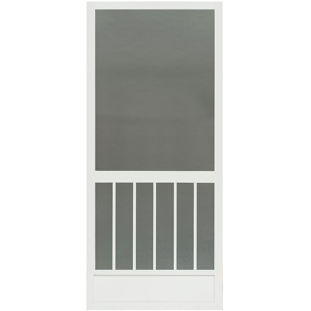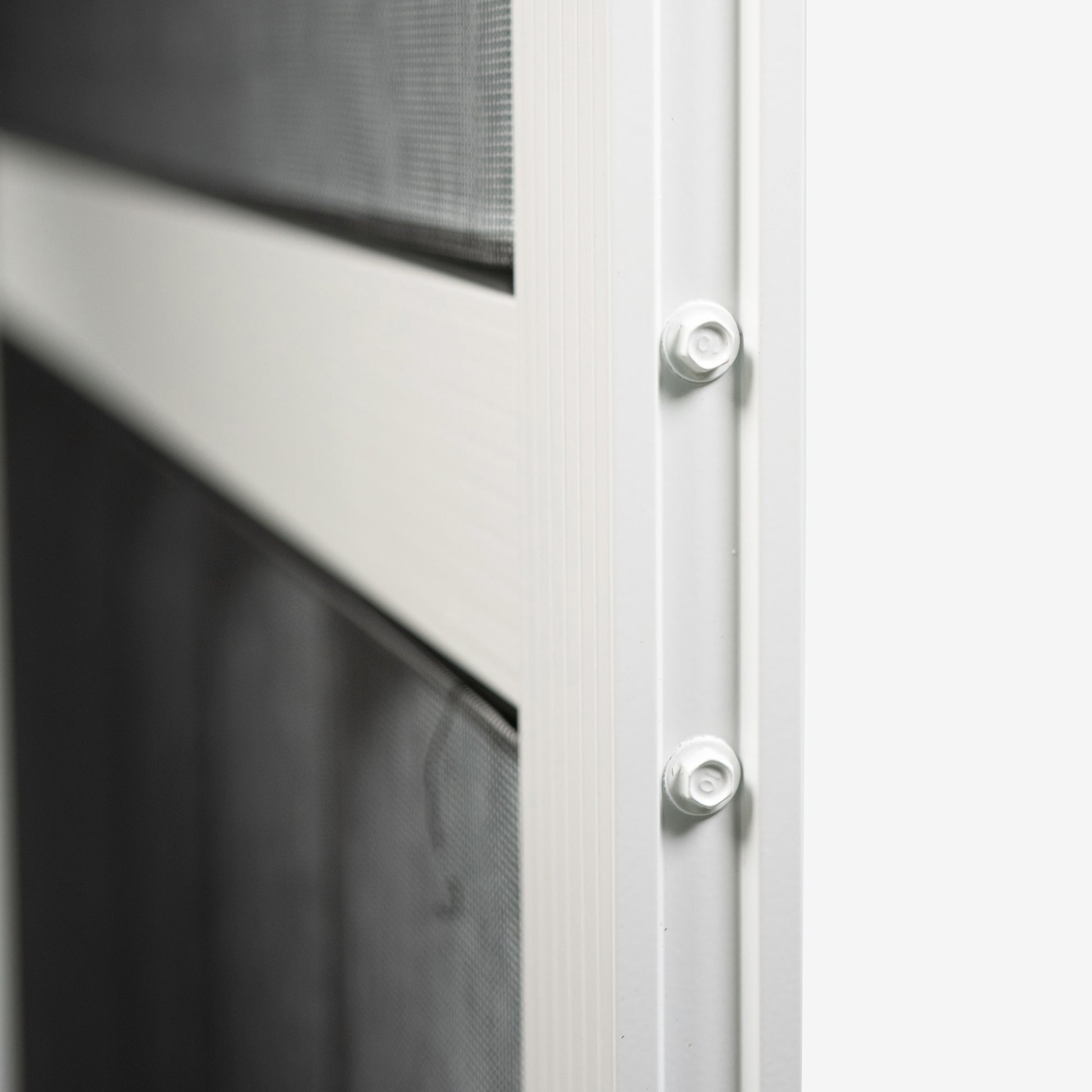 - Heavy aluminum frame will not rot, rust, twist or splinter and Aluminum Corner Keys keep the corners tight to prevent door sag