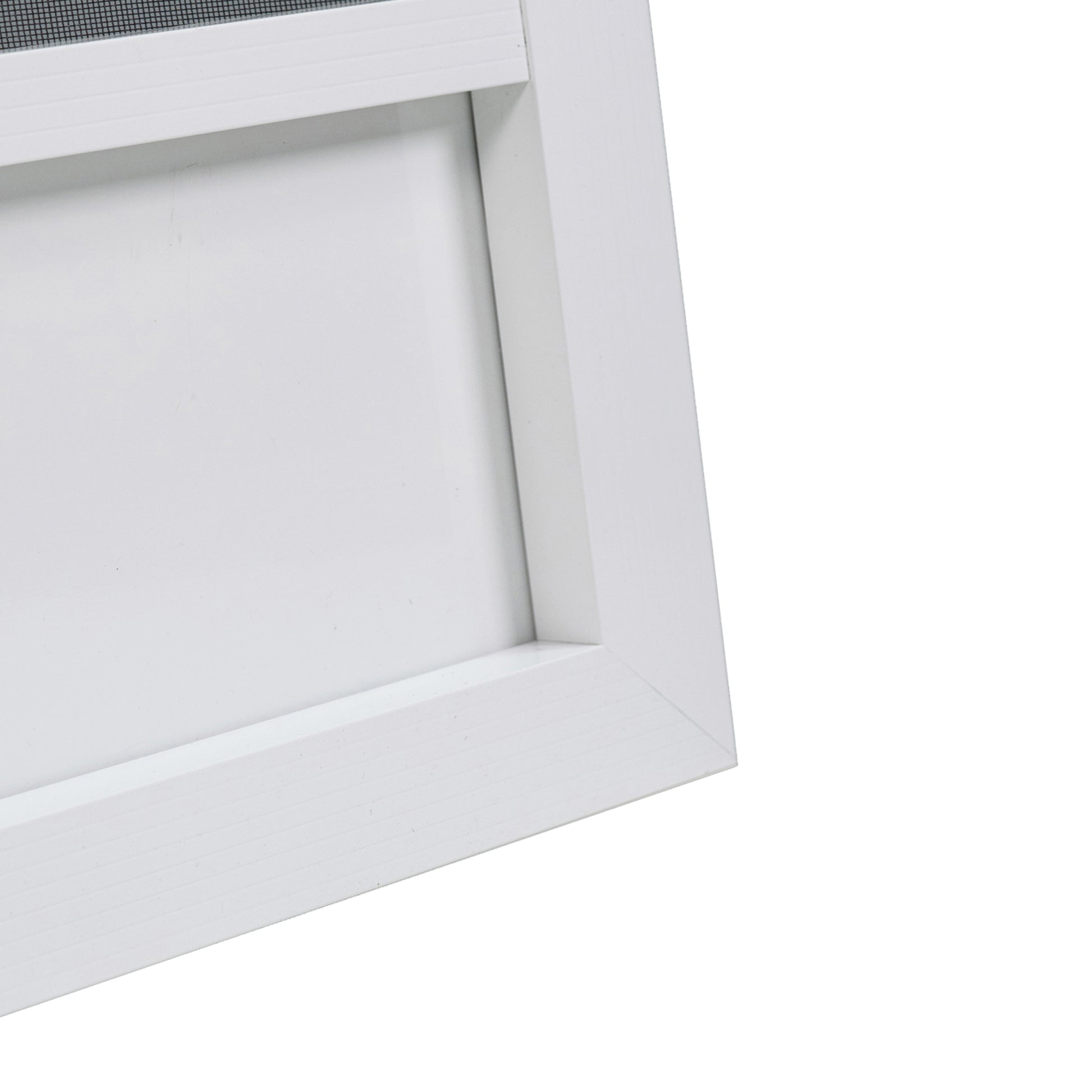 - All installation hardware included: Aluminum z-bar frame, adjustable side expander with continuous piano hinge and installation fasteners