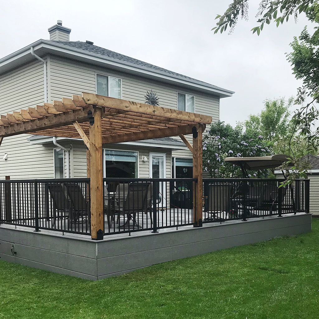 We offer aluminum railing styles to fit any home design. To speed up and simplify the assembly process, our aluminum railing pairs with pre-assembled posts (sold separately). A super durable powder-coated finish means no painting upkeep and no rust β just simple enjoyment.